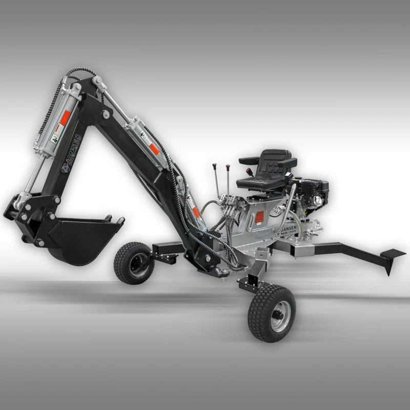 De Jansen MB-300 minigraafmachine (spin-graafmachine) is een erg robuust en makkelijk bestuurbare machine waarmee je ook toegang tot moeilijk bereikbare locaties krijgt. Hij is met een 10 PK benzinemotor uitgerust die de hydraulische pomp aandrijft. Het verplaatsen van deze minigraafmachine is eenvoudig door gebruik te maken van de hydraulische graafarm. De zijdelingse zwenkhoek heeft een radius van 155 graden.